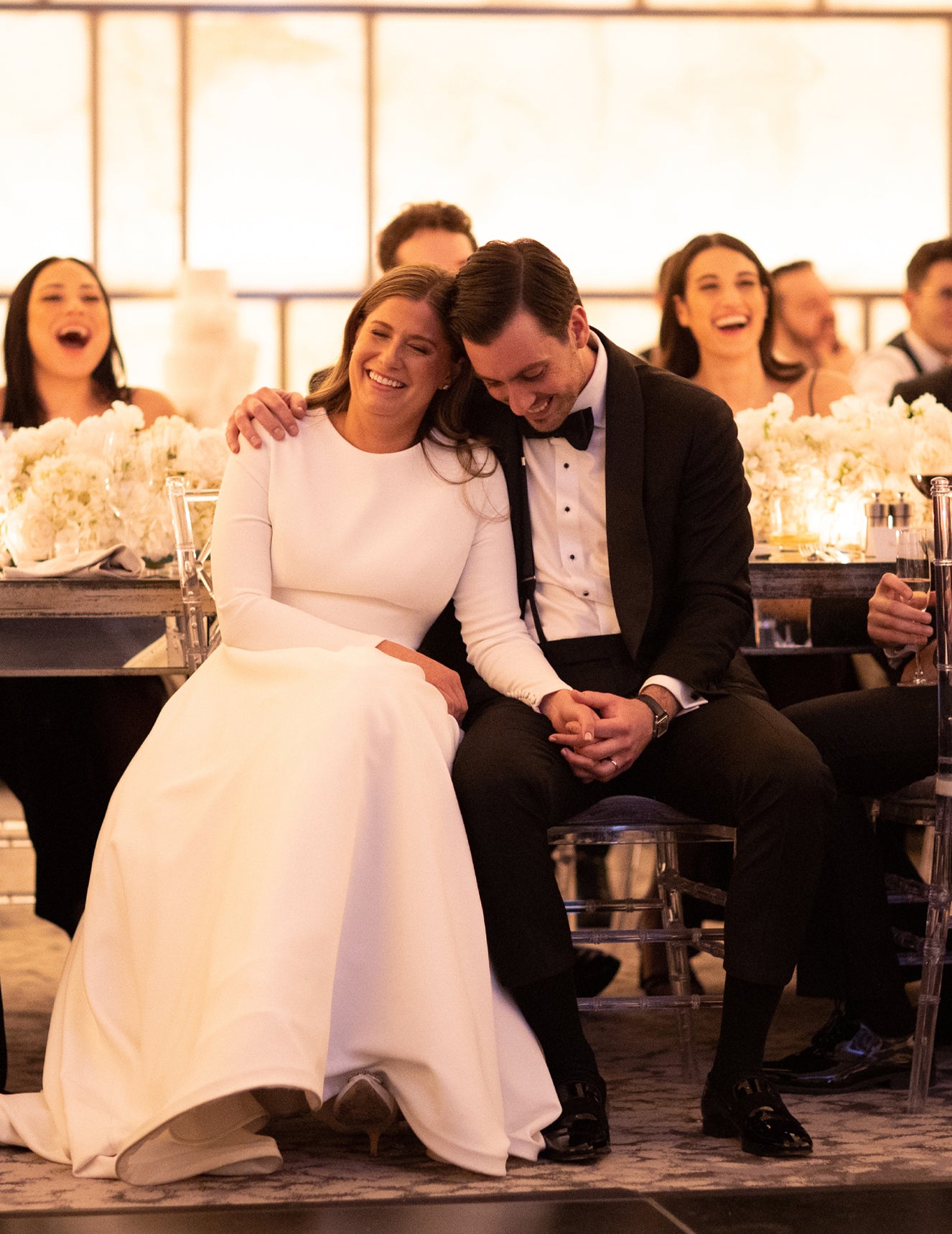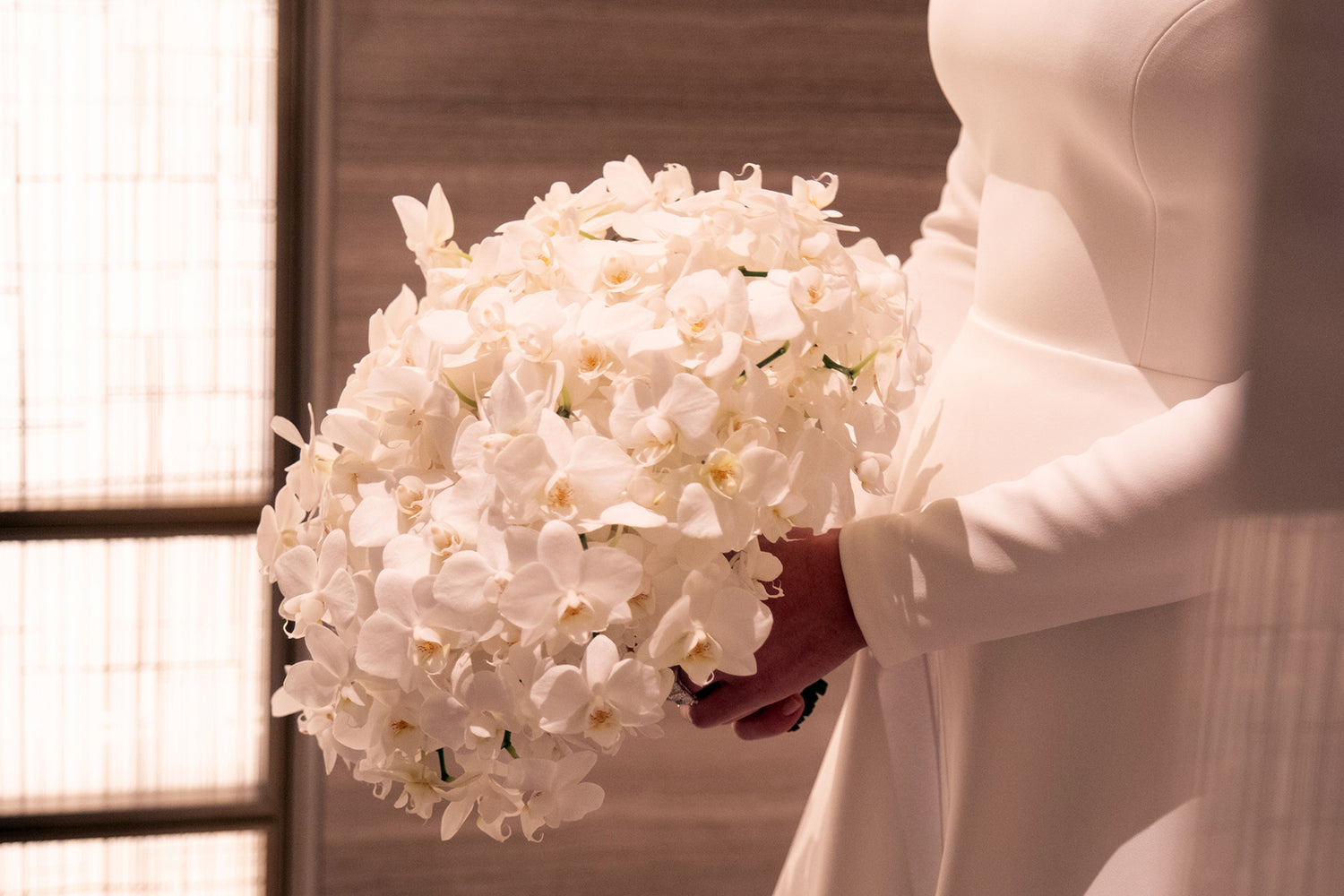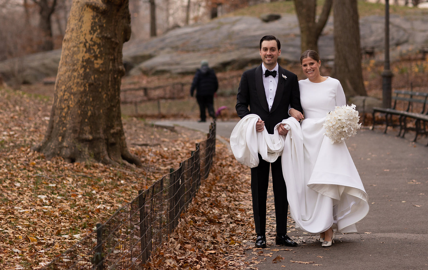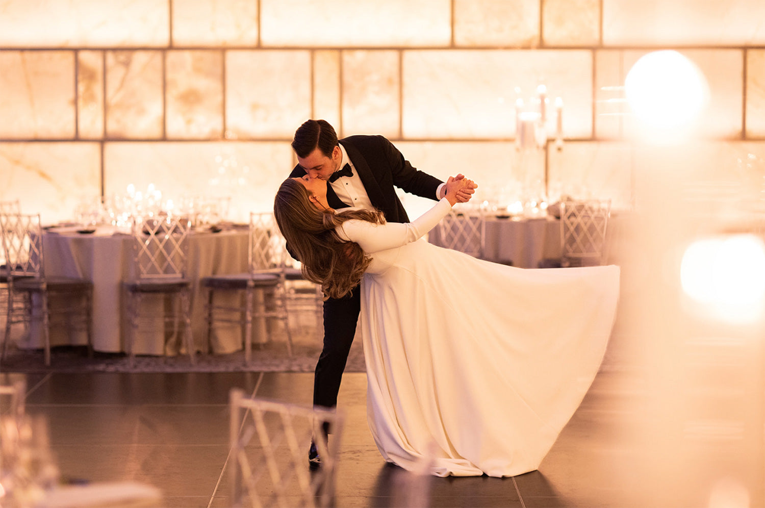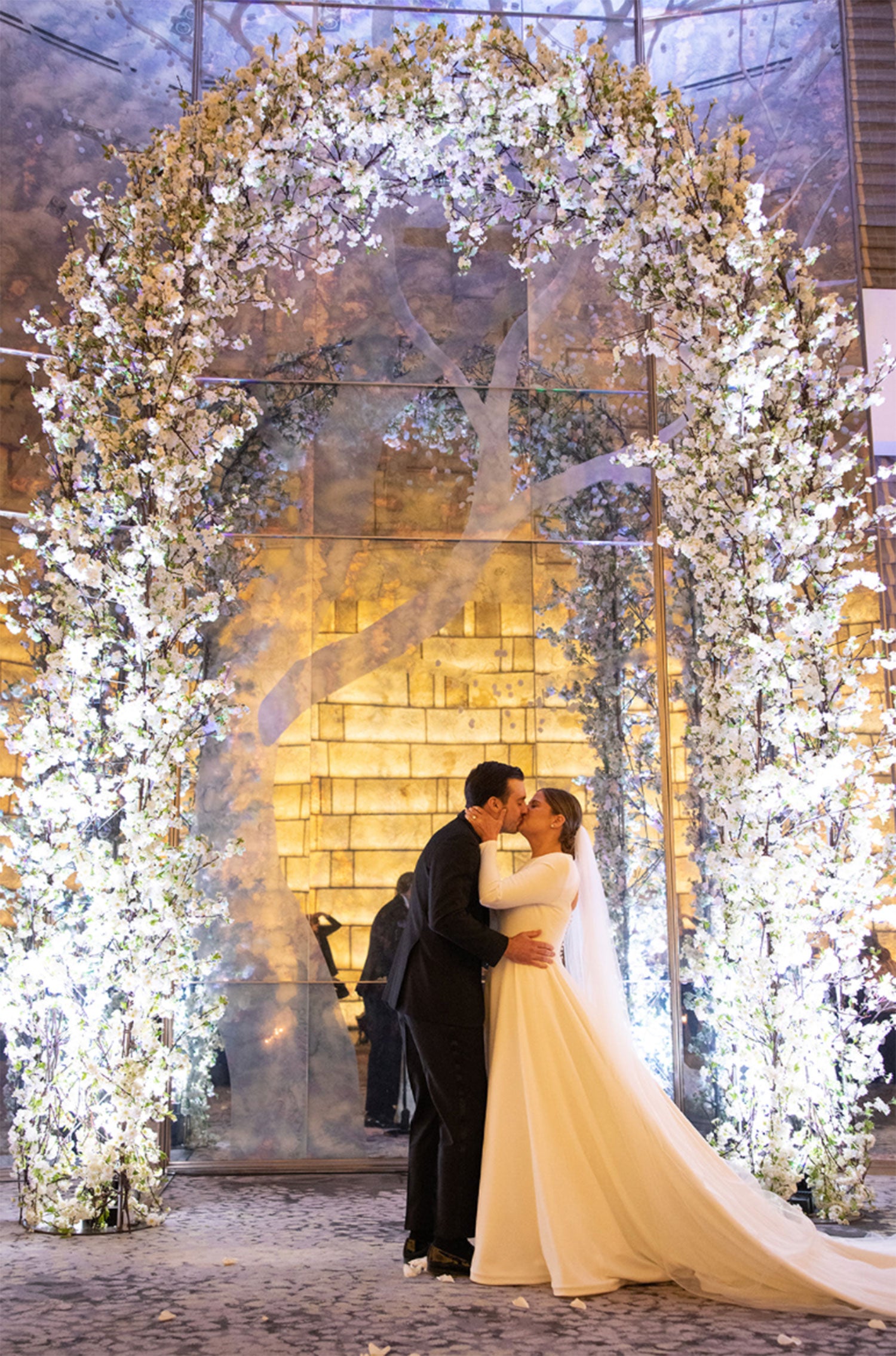 In the heart of a crisp New York winter, an affair unfolded that would be remembered for years to come. The bride and groom took a quiet moment for a stroll through Central Park before welcoming 150 guests to the elegant Park Hyatt, where the evening’s magic began to take shape. At the center of it all stood a breathtaking 16-foot arch, Belle Fleur’s tallest design to date, an awe-inspiring backdrop for the ceremony, which remained in place throughout dinner, casting an ethereal presence over the celebration.