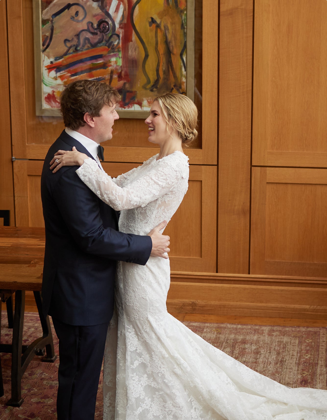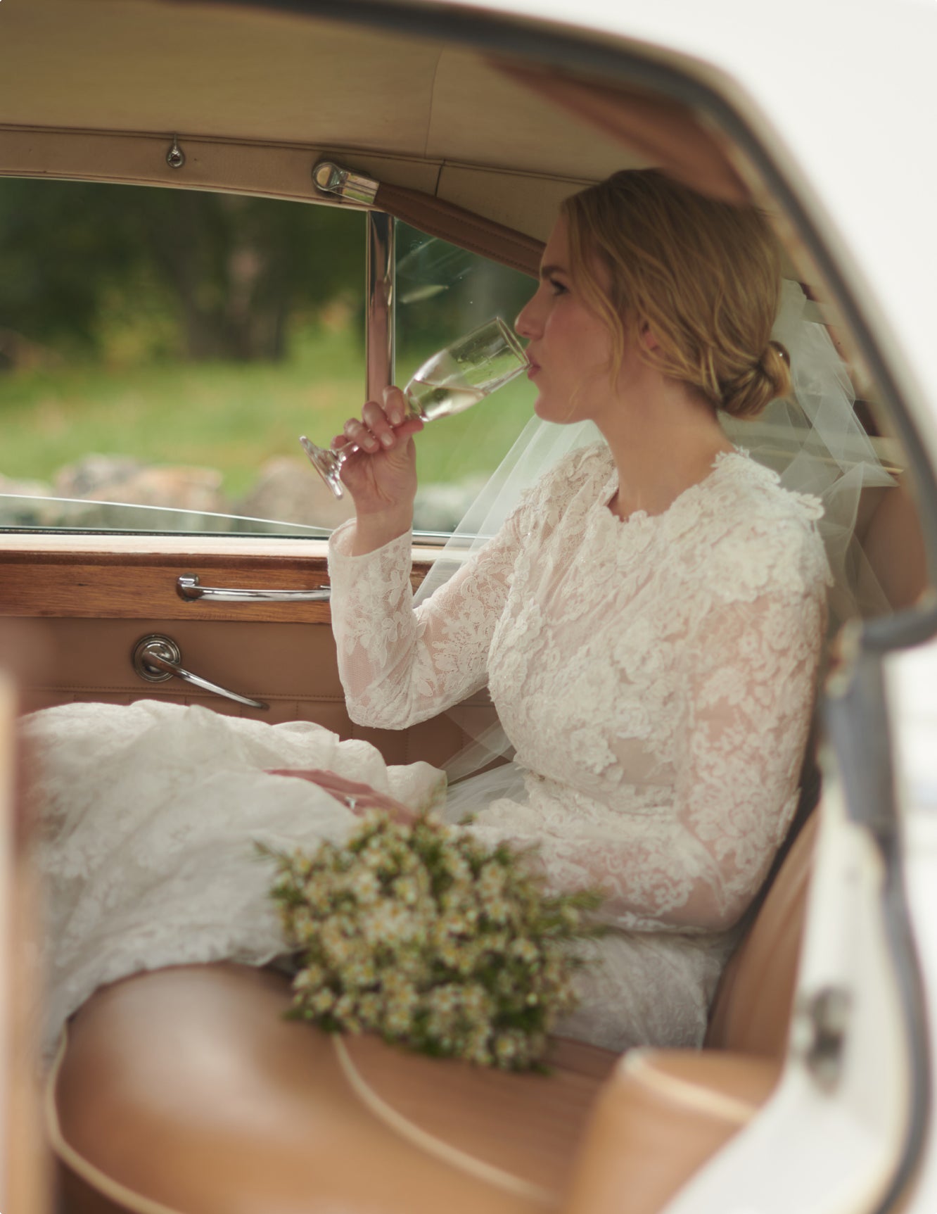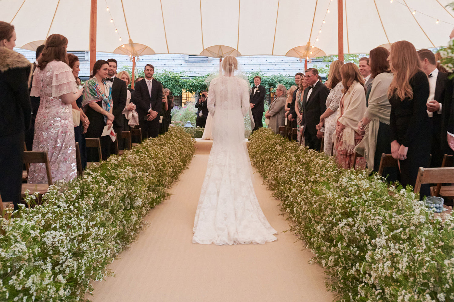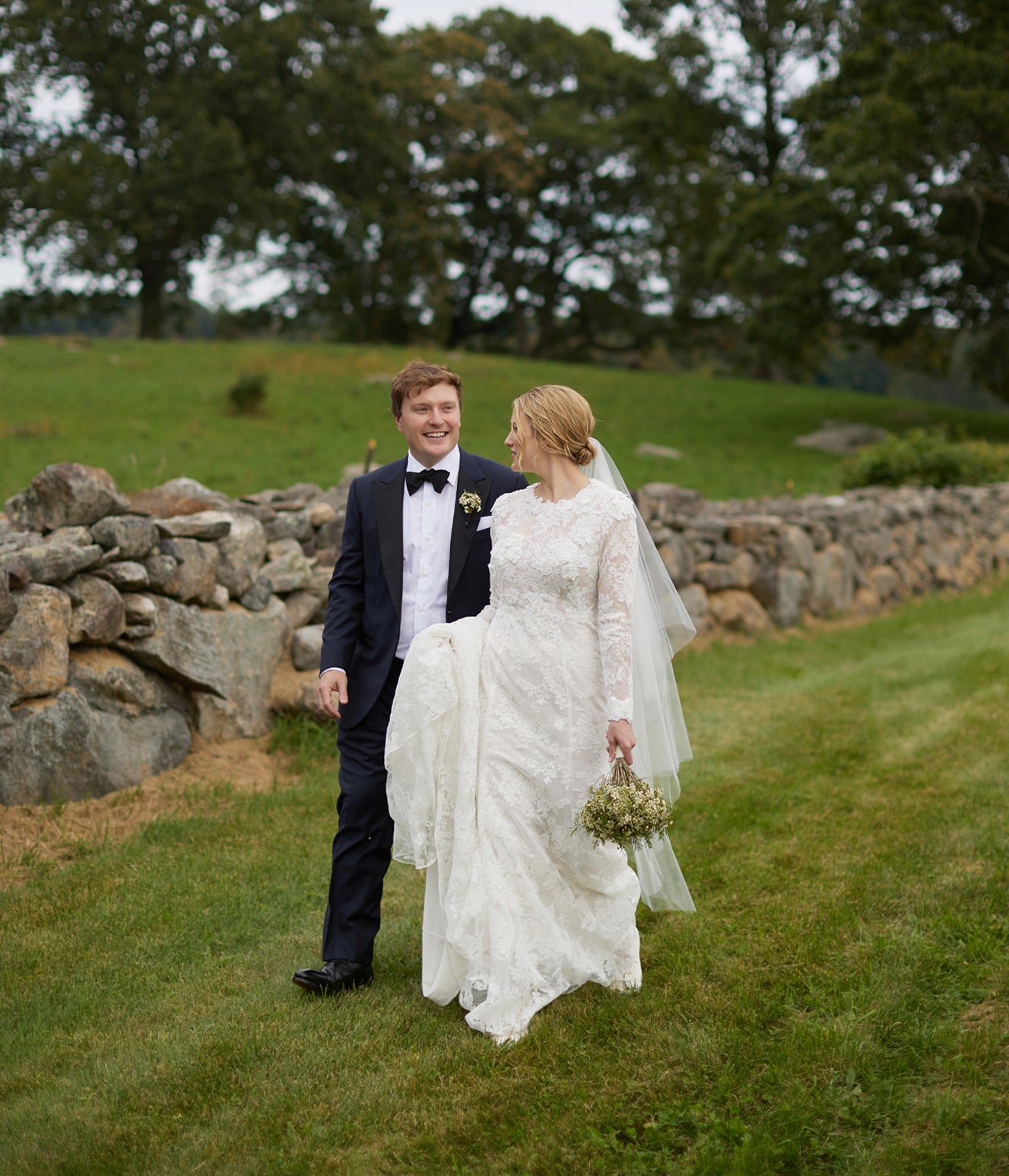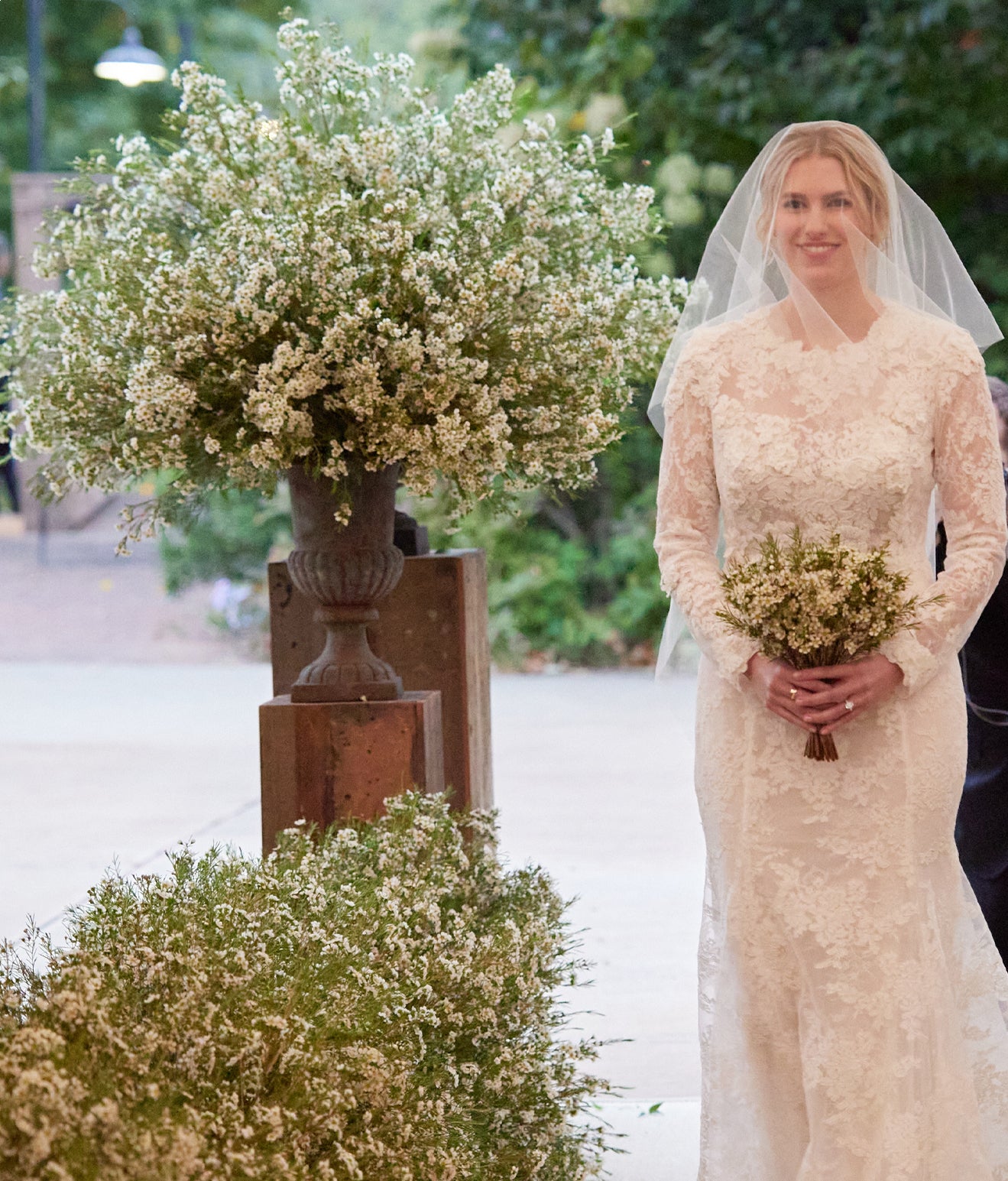 Set against the stunning backdrop of Blue Hill at Stone Barns, one of the region’s most renowned farm-to-table estates, this wedding brought the best of both worlds—glamour and rustic charm. High school sweethearts at heart, the couple arrived in a pristine white Rolls Royce, bringing an air of polish to the countryside, yet their effortless connection spoke volumes of their down-to-earth nature. The bride’s favorite flower, Wax Flower, became the ceremony flower of choice. Its delicate blooms, so country in essence, took on an unexpected chicness when woven into every detail: a clutch of Wax Flower in her hands, a boutonniere on his lapel, and bushels and bales lining the natural sisal carpeted aisle, transforming the tented courtyard. The Wax Flowers, in their abundance, even attracted butterflies, as if nature itself were joining in on the celebration.